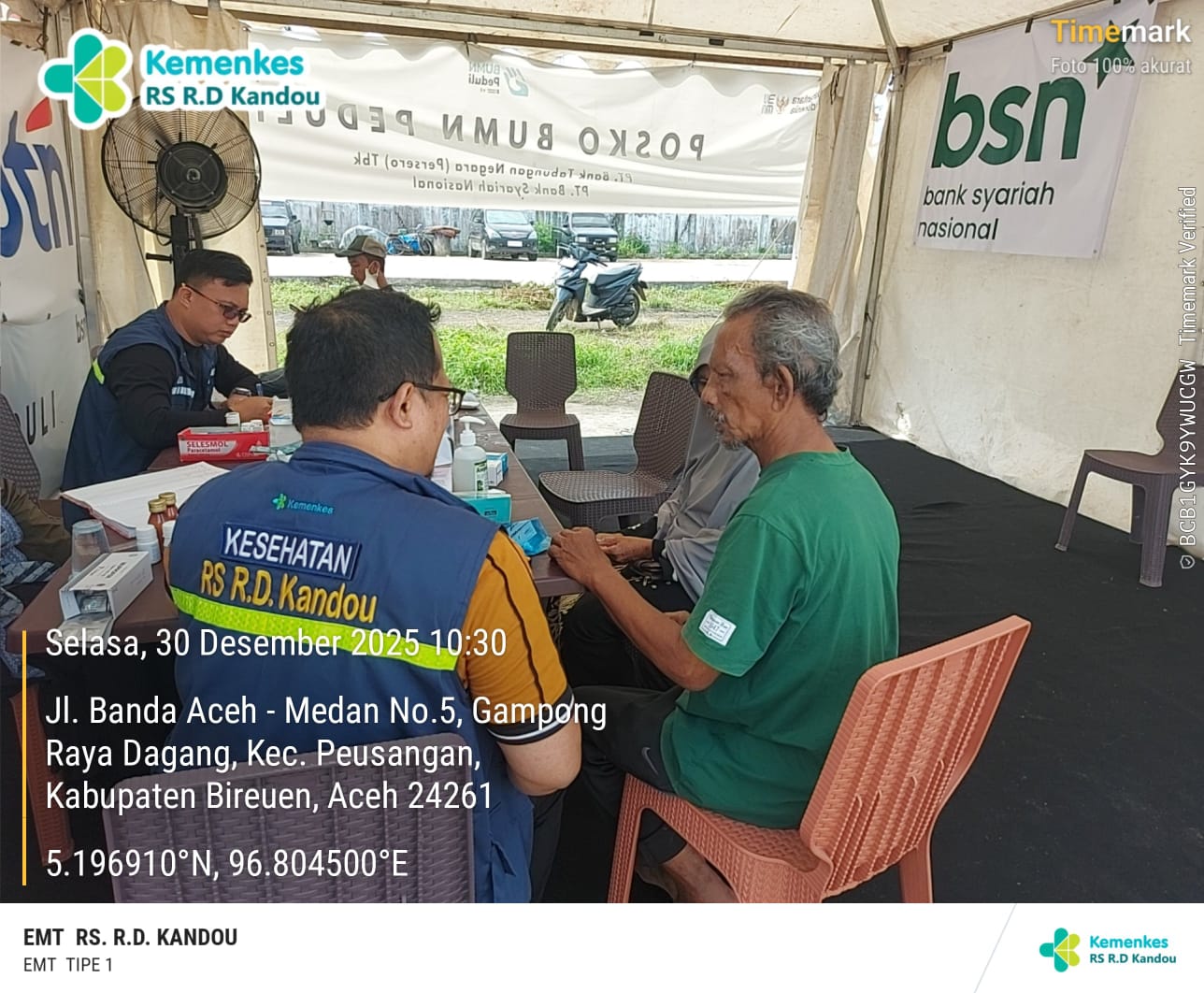 Berdasarkan arahan Ketua HEOC, Tim EMT RSUP Kandou ditugaskan ke Kabupaten Bireuen, tepatnya di UPTF Puskesmas (PKM) Peusangan, salah satu wilayah yang terdampak cukup berat akibat banjir bandang dan tanah longsor.
